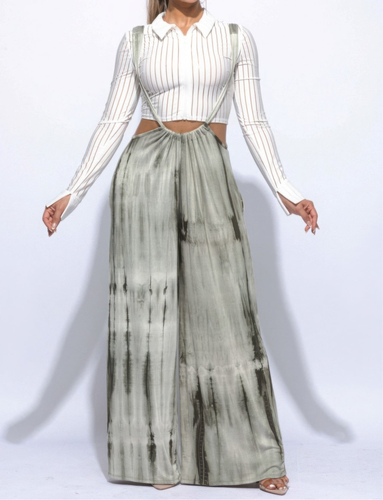 This jumpsuit offers a relaxed design and customizable fit, enhanced by the trendy tie-dye print. The olive color adds a sophisticated touch, making it a versatile addition to your wardrobe that can be styled for various occasions.