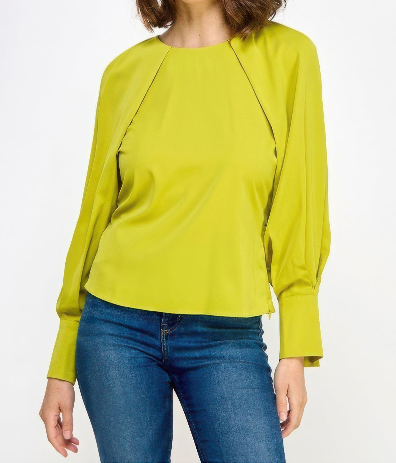 This top combines the classic appeal of raglan sleeves with the elegance of a back neck tie, offering a stylish and comfortable addition to your wardrobe. The citron color adds a lively and refreshing touch.